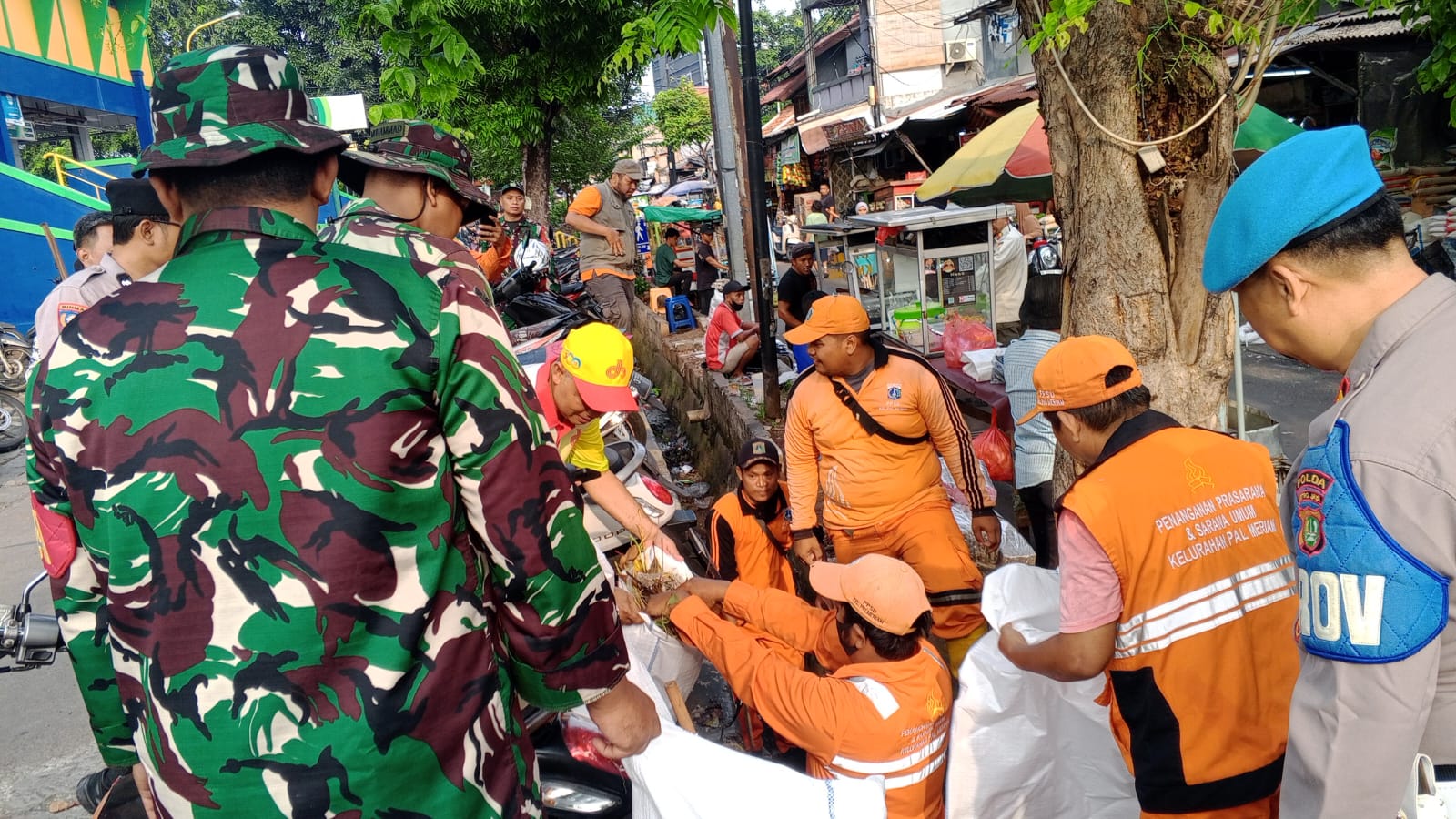 Dalam aksi kegiatan gotong royong ini melibatkan personel Babinsa, anggota Polri, Satpol PP, Petugas PPSU Kelurahan serta Warga sekitar dan para pedagang pasar.