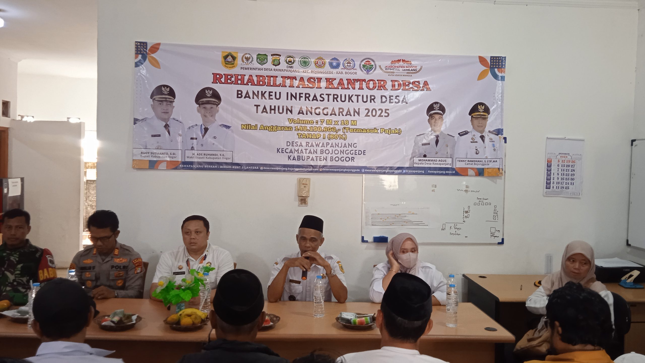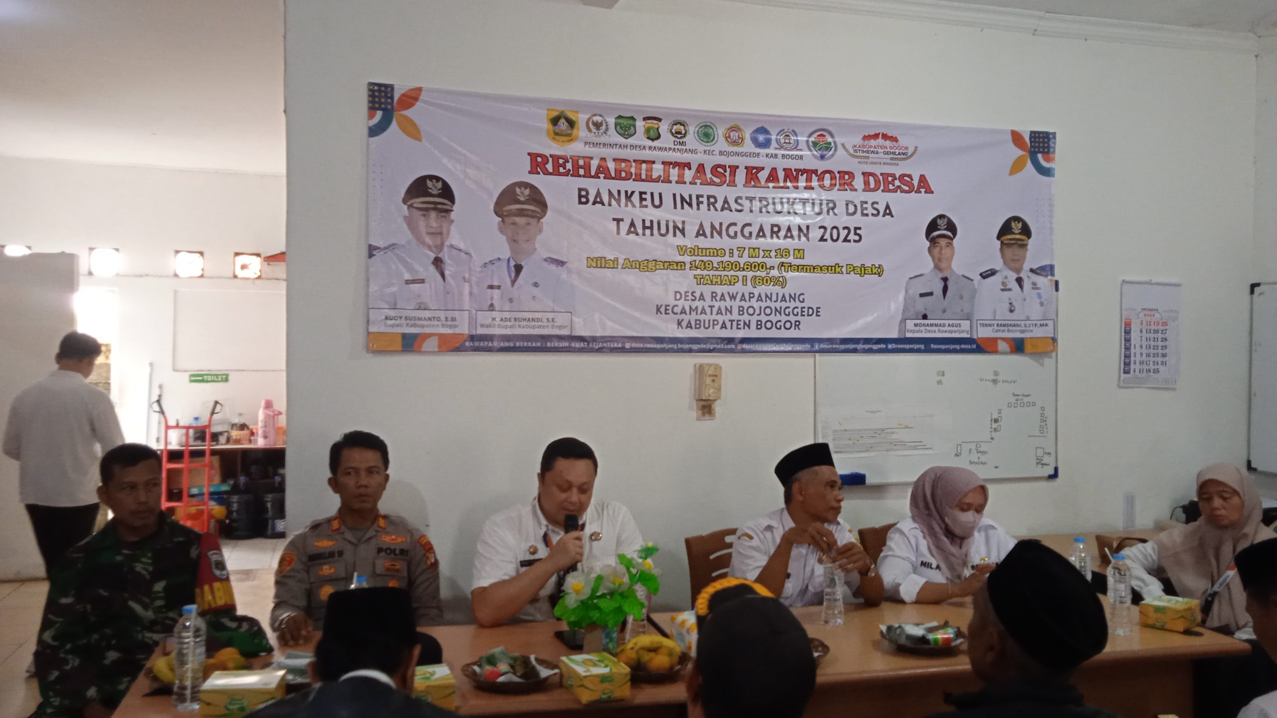 MDI. NEWS – BOJONGGEDE – Pemerintah Desa Rawa Panjang, Kecamatan Bojonggede, Kabupaten Bogor, secara resmi memulai program rehabilitasi Kantor Desa yang bersumber dari Bantuan Keuangan Infrastruktur Desa Tahun Anggaran 2025. Acara dimulainya rehabilitasi ini digelar pada Rabu, 29 Oktober 2025, di Kantor Desa Rawa Panjang.
