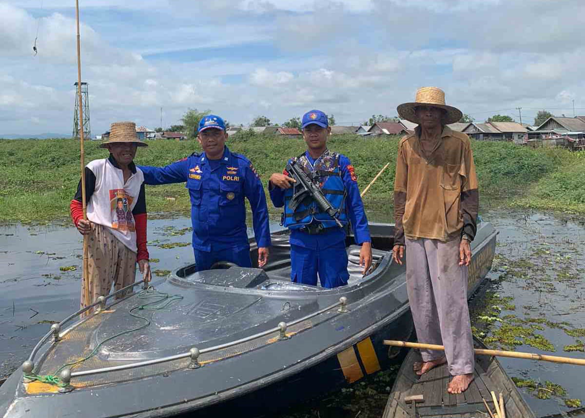 MDI NEWS | Kandangan – Personel Ditpolairud Polda Kalsel di Markas Unit (Marnit) Danau Bangkau Kabupaten Hulu Sungai Selatan (HSS) imbau warga agar tidak menangkap ikan dengan menggunakan racun dan setrum, Sabtu (20/05/2023)