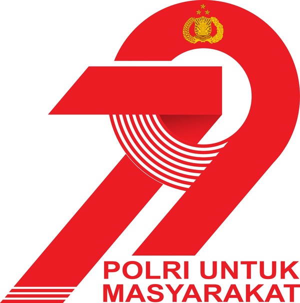 Logo HUT Bhayangkara ke-79 tahun 2025 dengan tema Polri untuk Masyarakat, simbol dedikasi Polri dalam menjaga keamanan dan melayani rakyat Indonesia.