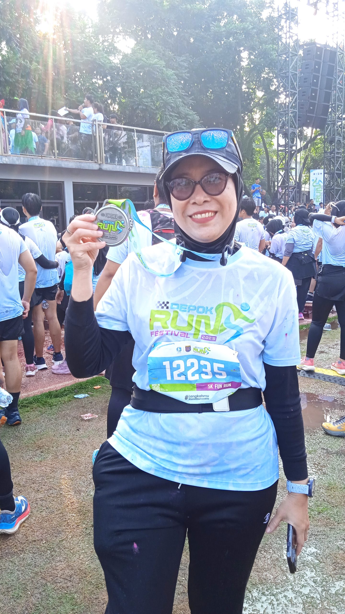 Delita Laitany peserta lomba Depok Run Festival 2025 warga Depok Grand Depok Residence Tanah Baru menyampaikan bahwa acara Depok Run festival 2025 sangat berkesan dan ini adalah pengalaman perdana buat saya .