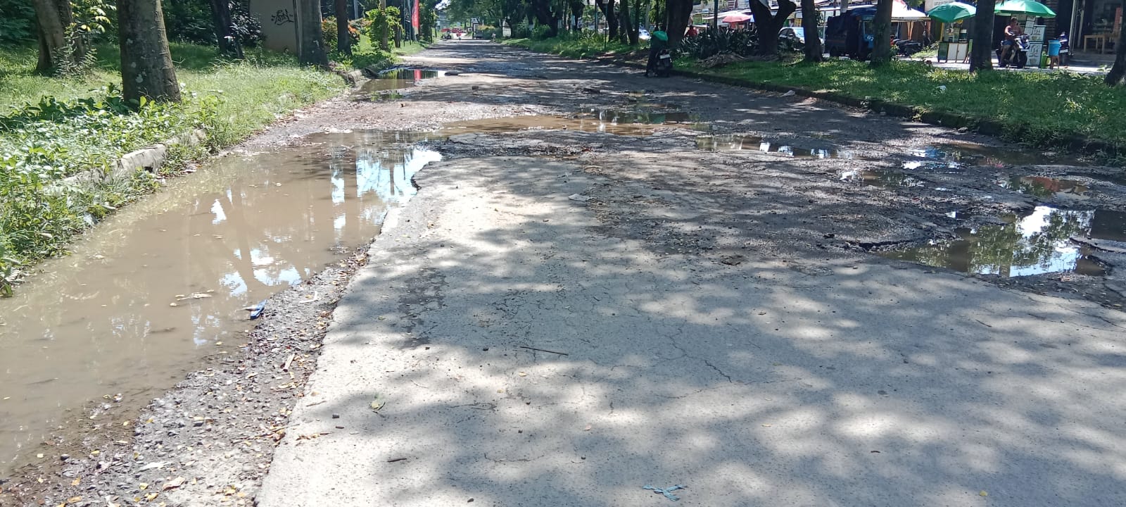 Ia menjelaskan, genangan air kerap menutupi jalan yang sudah rusak dan berlubang, sehingga membahayakan pengguna jalan. Sejumlah warga dilaporkan mengalami kecelakaan, mulai dari terjatuh hingga kendaraan mengalami kerusakan akibat kondisi jalan yang licin dan tertutup air.