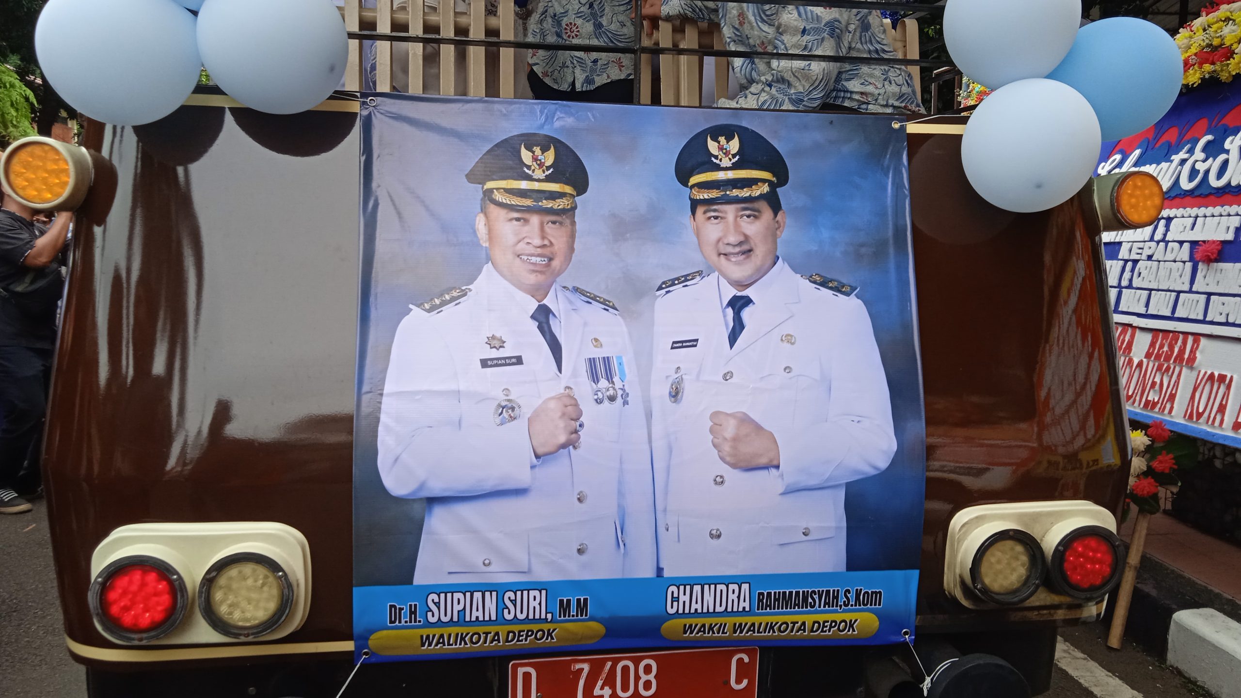 Banyak warga Depok yang memberikan ucapan dan karangan bunga selamat dan sukses atas terpilih Supian Suri dan Chandra Rahmansyah sebagai Walikota dan Wakil Walikota Depok periode 2025 -2030 .