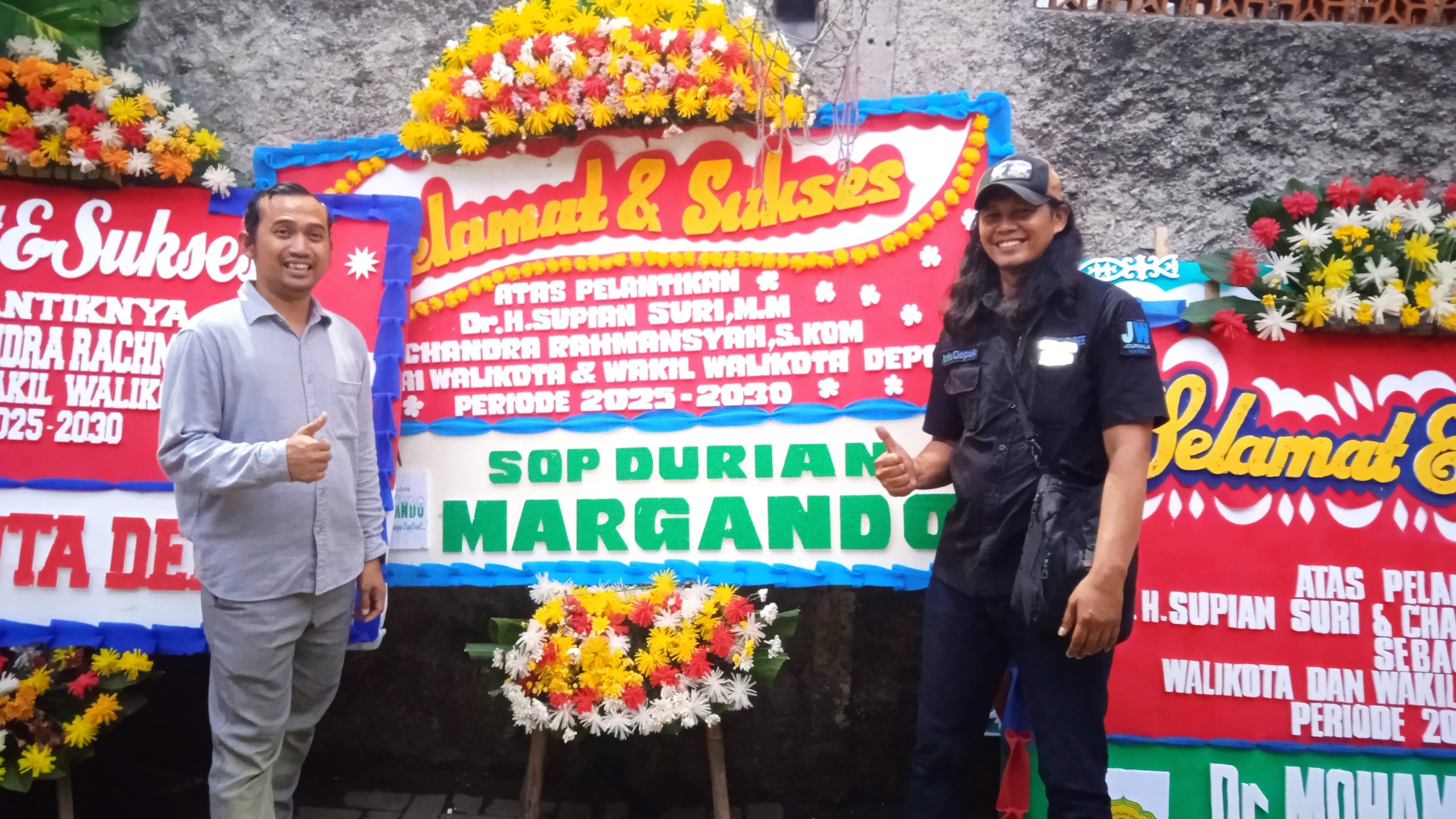 Gendra Krama Putra Santosa Pemilik Sop Durian Margando mengucapkan Selamat dan Sukses atas dilantik Dr. H. Supian Suri dan Chandra Rahmansyah sebagai Walikota dan Wakil Walikota Depok periode 2025 – 2030 .