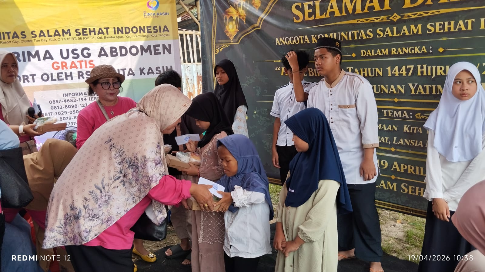 MDI.NEWS – Ciputat . Komunitas Salam Sehat Indonesia mengadakan program rutin bulanan yaitu santunan yatim piatu dhuafa dan lansia bertepatan dengan Halalbihalal bersama warga kelurahan sawah ciputat pengurus dan anggota kssi, yang diselenggarakan di kedai bakso Anjani , kelurahan Sawah , Ciputat , Tanggerang Selatan. Minggu, 19 April 2026.