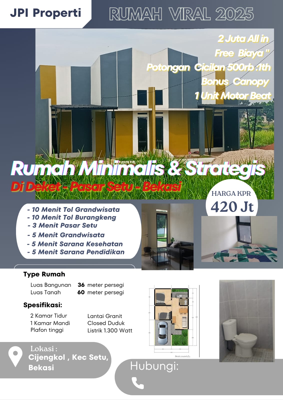 MDI.NEWS, Bekasi – Hunian eksklusif terbaru dengan konsep Rumah Minimalis & Strategis di kawasan Cijengkol, Kecamatan Setu, Bekasi.