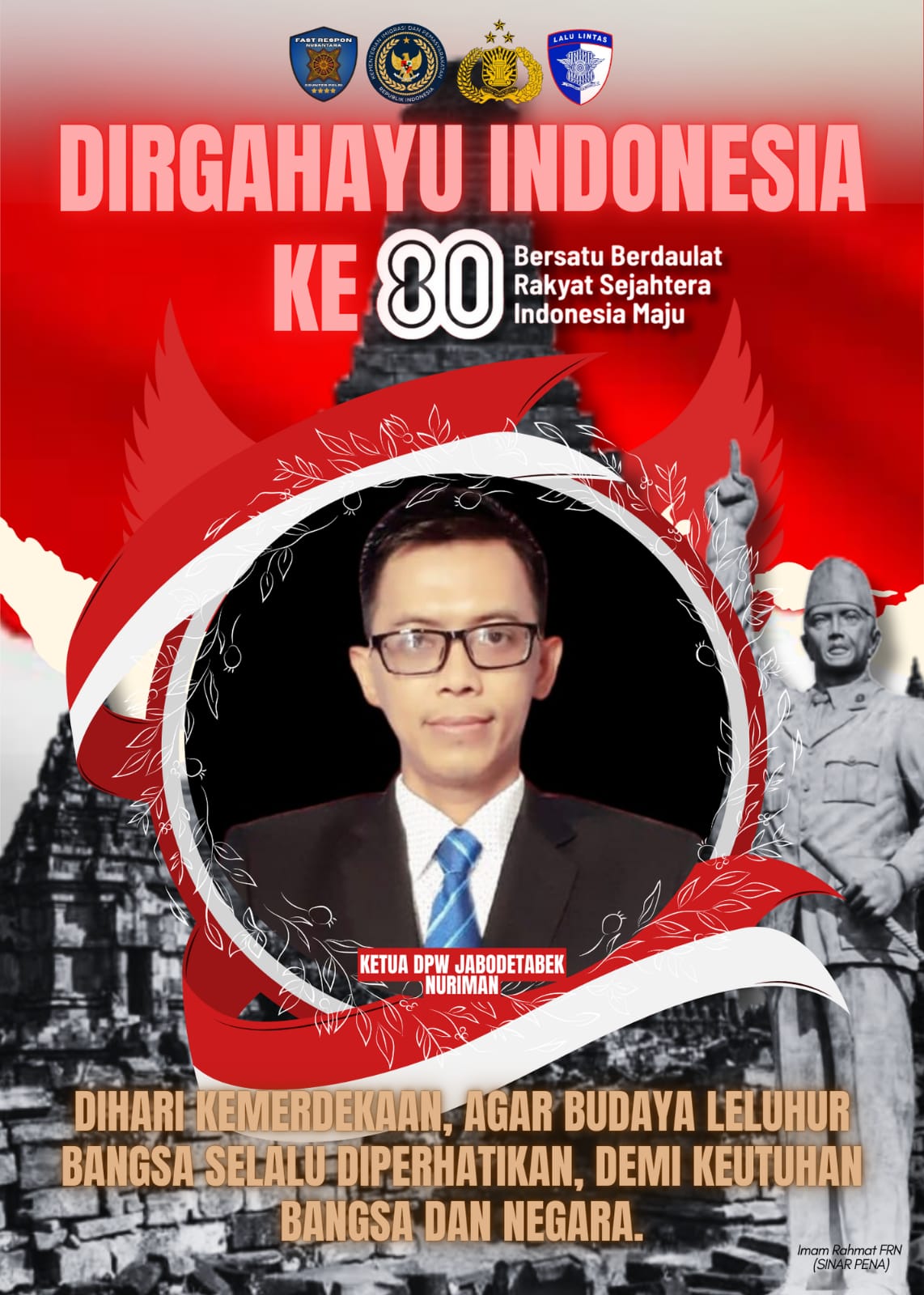 MDI.NEWS, Bekasi – Ketua Dewan Pimpinan Wilayah (DPW) Fast Respon Nusantara (FRN) Counter Polri Jabodetabek, Maman Nuriman atau yang akrab disapa Nuriman, menyampaikan ucapan selamat memperingati Hari Ulang Tahun (HUT) ke-80 Kemerdekaan Republik Indonesia.