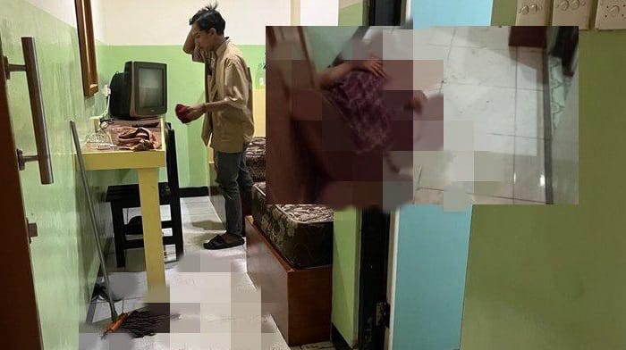 Perempuan tersebut tergeletak di depan ruangan kamar tersebut dengan kondisi darah yang mengucur dari tubuhnya.