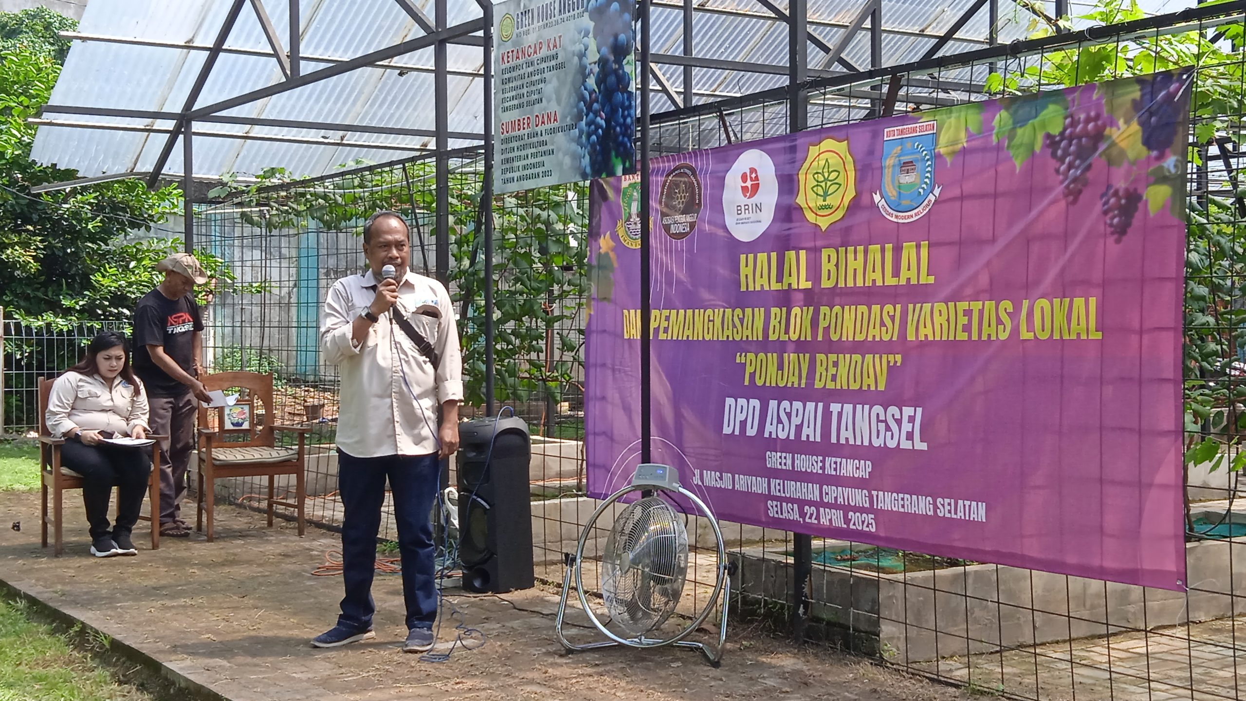 MDI. NEWS – Cipayung, Ciputat. Dinas Ketahanan Pangan, Pertanian dan perikanan Kota Tangerang Selatan menghadiri undangan Halal Bihalal dan Pemangkasan Blok Pondasi Varietas Lokal “PONJAY BENDAV” di Green House Ketancap Jl. Masjid Ariyadh Kelurahan Cipayung Tangerang Selatan dari Asosiasi Penggiat Anggur Indonesia ASPAI DPD Tangerang Selatan.Pada Hari Selasa, 22 April 2025 .