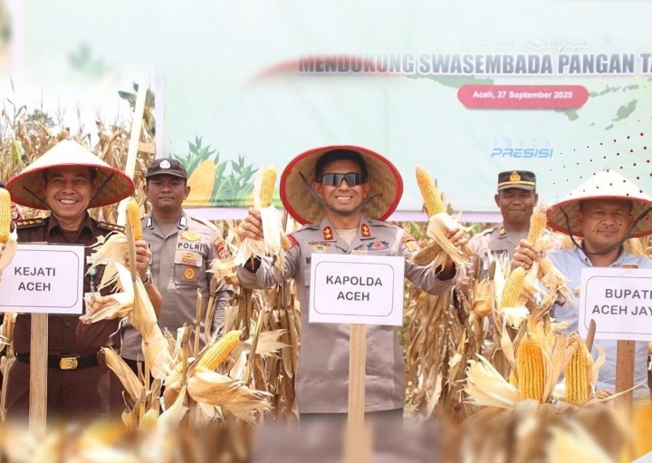 Di wilayah Aceh, panen jagung serentak berlangsung di Desa Pulo Tinggi, Kecamatan Pasie Raya, Kabupaten Aceh Jaya, pada Sabtu, 27 September 2025. Kapolda Aceh menjelaskan, lahan seluas 5 hektar di Aceh Jaya menghasilkan 24,5 ton jagung.