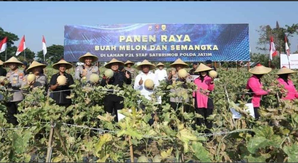 “Satbrimob Polda Jatim memanfaatkan lahan seluas 10 hektare di pekarangan mako, dengan satu hektare diantaranya digunakan menanam melon jenis Amanda dan semangka kuning. Ini adalah panen kedua setelah sukses pada Juli lalu,” ujar Kombes Pol. Suryo.