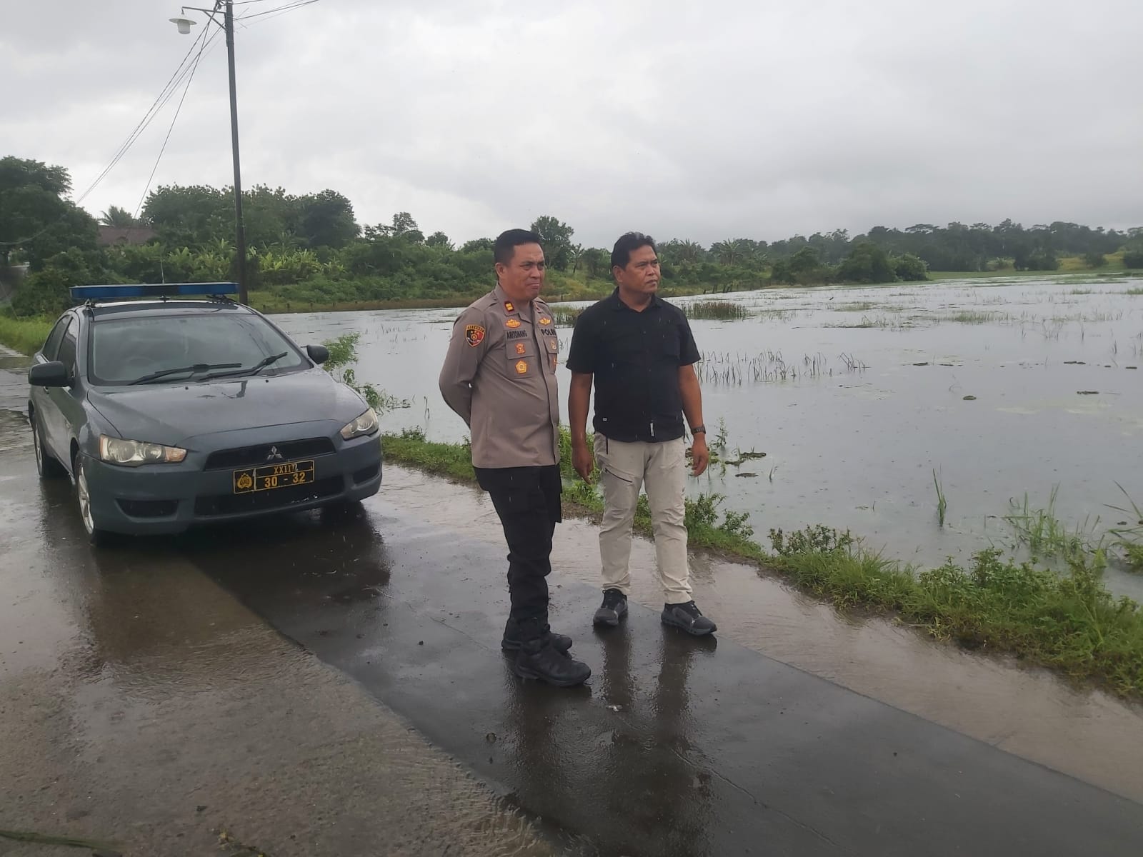 Kapolsek Panongan IPTU Irruandy Aritonang, S.H. menyampaikan bahwa pihaknya terus melakukan pemantauan intensif terhadap wilayah-wilayah yang berpotensi terdampak banjir, khususnya saat curah hujan meningkat.
