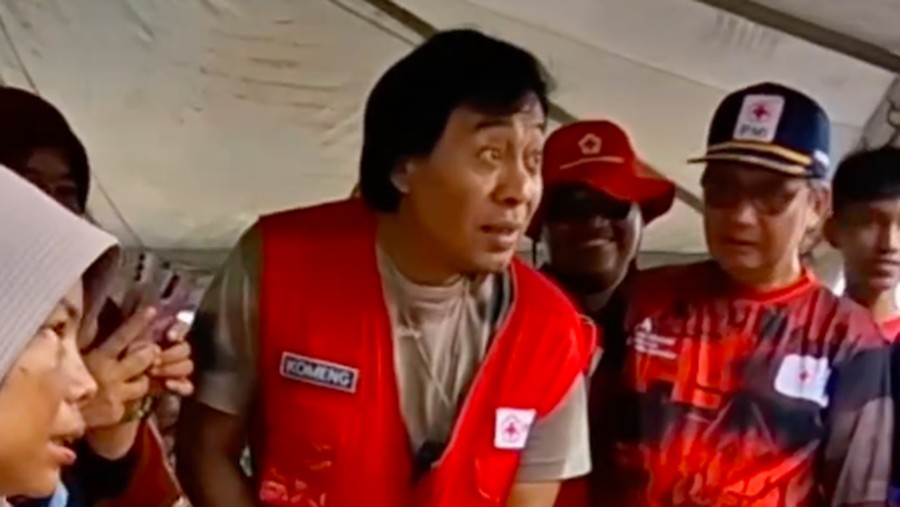 Komeng datang sebagai relawan Palang Merah Indonesia (PMI) dengan membawa berbagai kebutuhan dasar, termasuk air bersih dan paket bantuan untuk para pengungsi. Tidak hanya fokus pada distribusi logistik, Komeng juga menyempatkan diri berkeliling posko, berinteraksi dengan anak-anak, dan melontarkan candaan ringan yang membuat suasana pengungsian lebih hangat. Beberapa pengungsi mengaku kehadiran Komeng memberi sedikit ruang untuk tersenyum di tengah ketidakpastian akibat bencana.