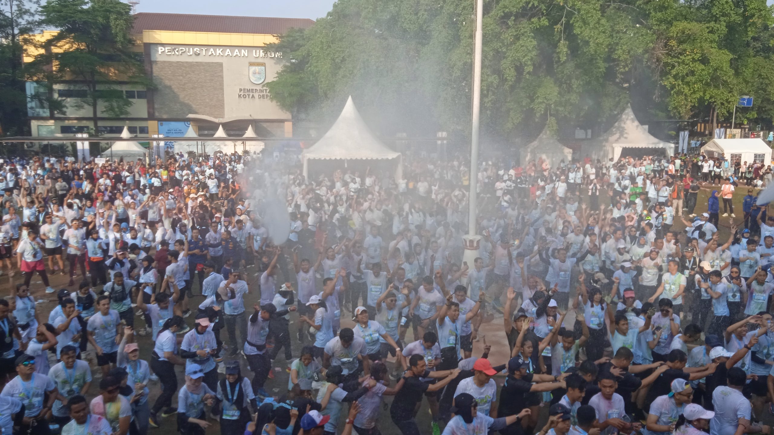 Luapan Kebersamaan dan kegembiraan Warga Depok Setelah mengikuti Depok Run Festival 2025 dengan Musik dan Guyuran Air Damkar.