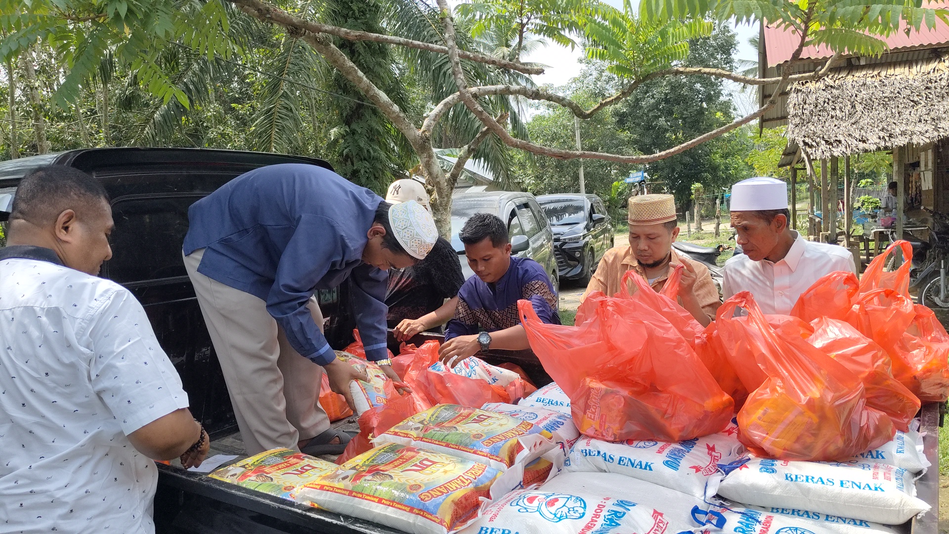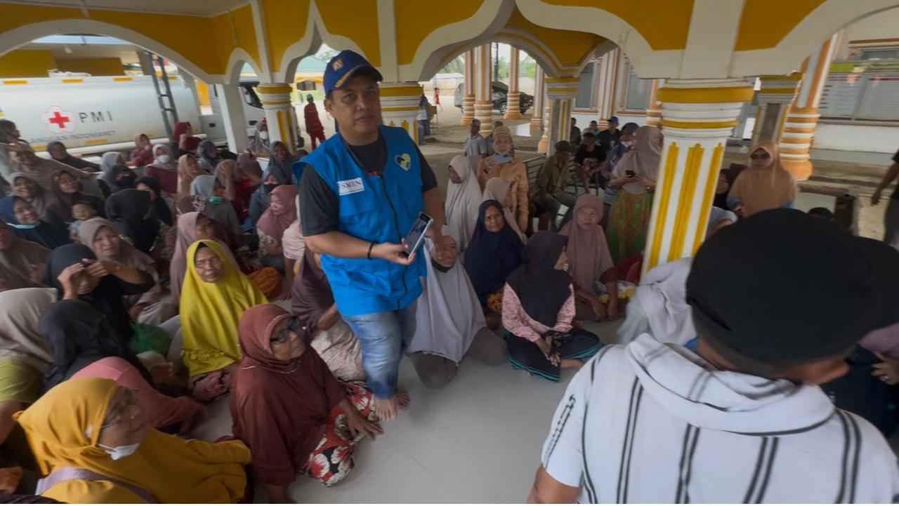 Penyaluran bantuan berupa dukungan untuk rumah ibadah mushola, paket sembako, serta uang saku bagi warga terdampak banjir bandang.