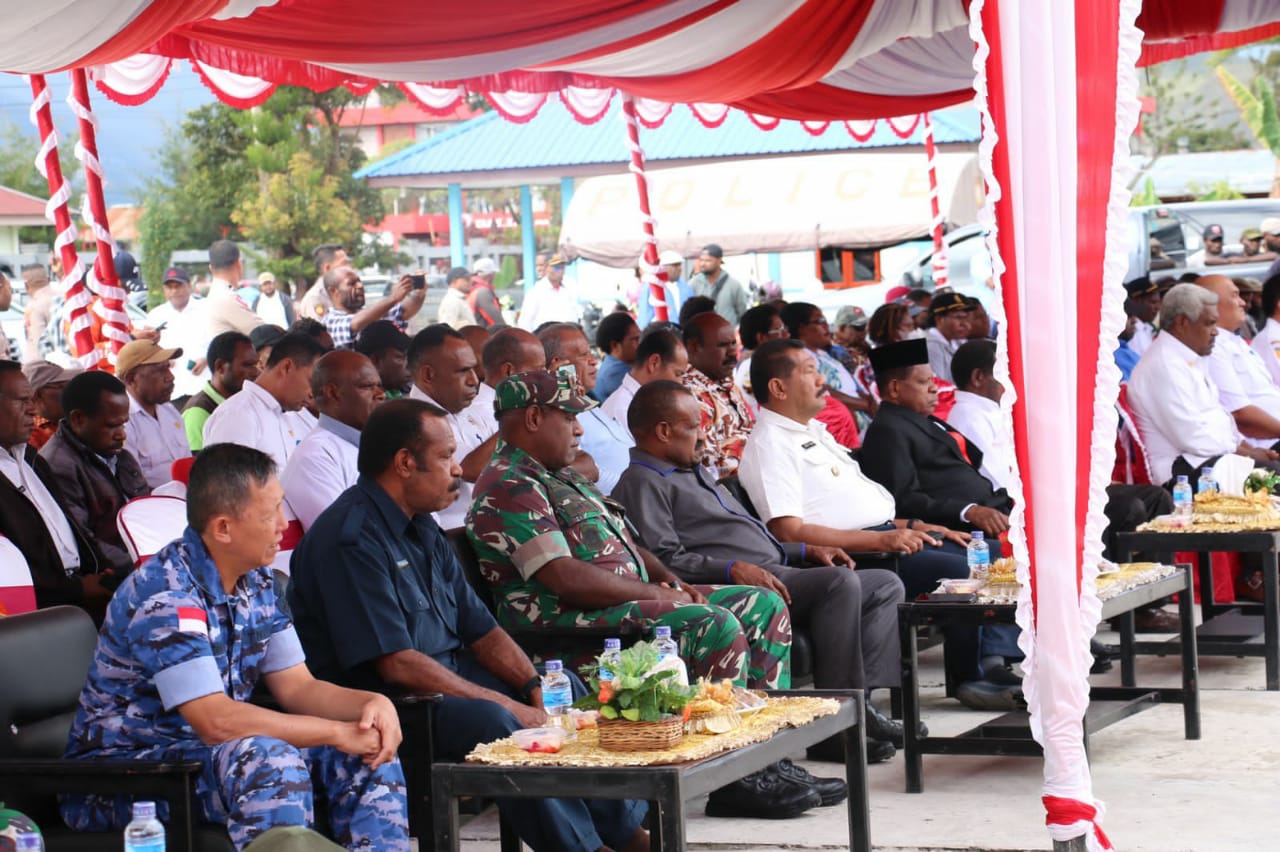 Adapun turut Hadir, Bupati Jayawijaya Jhon Richard Banua SE,M.Si, Sekda Jayawijaya Toni M. Mayor S. Pd. MM., Wakapolres Jayawijaya Kompol Muh. Nur Bakti S. H M. H., Wadan Lanud Wamena Letkol Adm Yotam Djalima, Wadanyon 756/WMS Mayor Inf I wayan budi santosa, Ketua DPRD Jayawijaya Matias Tabuni, Ketua LMA Jayawijaya Herman Doga, Asisten I Gubernur Papua Pegunungan Wasouk Demianus Siep.