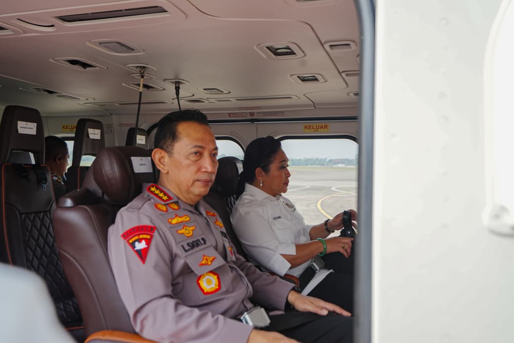 Rombongan terlebih dahulu tiba di Bandara Mahmud Badaruddin II Palembang sebelum melanjutkan perjalanan menggunakan helikopter Polri menuju lokasi acara.