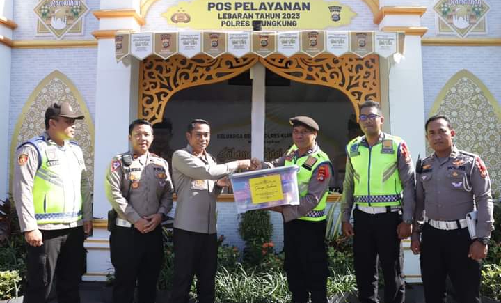 Disamping melakukan pengecekan pos pelayanan Goa Lawah, Kapolres Juga menyerahkan bingkisan kepada petugas serta menyampaikan untuk selalu menjaga kebersihan Pos sehingga nantinya jika ada masyarakat yang melaksanakan istirahat saat arus balik pos tetap telihat dengan bersih dan rapi. pungkasnya