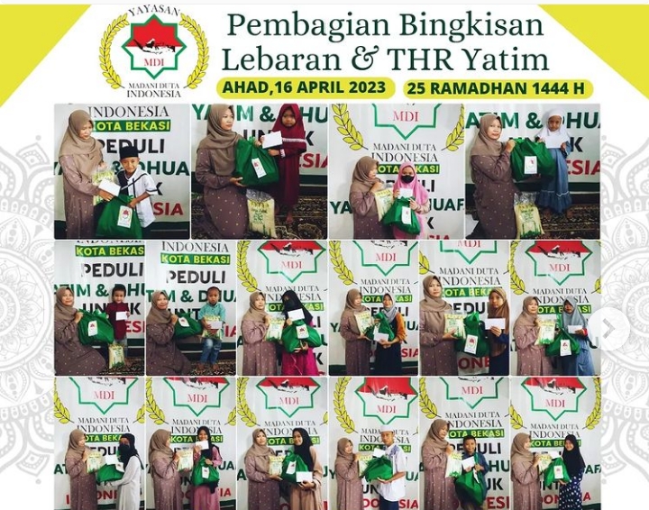 Masih kata Ketua Yayasan, berkat kedermawanan ayah, bunda dan kakak acara santunan pembagian THR dan pembagian bingkisan lebaran untuk adik yatim dan dhuafa berjalan lancar. “Semoga segala kasih sayang ayah, bunda dan kakak para dermawan yayasan dibalas yang berlipat ganda serta keberkahan hidup dunia dan akhirat,” tutup Imam Ketua Yayasan YMDI.