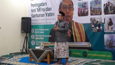 MDI.NEWS, Jakarta —- Yayasan Dharma Kasih Jakarta Timur (YDKJT) menggelar peringatan Isra Mi’raj Nabi Muhammad SAW 1447 Hijriah yang dirangkaikan dengan kegiatan santunan anak yatim, piatu, duafa. Acara tersebut berlangsung khidmat di Aula Istana Yatim lantai 3 YDKJT, Jalan Tambun Rengas RT 016 RW 001, Cakung Timur, Kecamatan Cakung, Jakarta Timur. Kegiatan dilaksanakan pada Minggu, 1 Februari 2026.