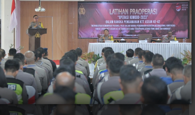 MDI NEWS | NTT, – Jelang pelaksanaan KTT Asean Summit ke-42 di Labuan Bajo pada tanggal 06 s/d 13 Mei 2023, Mabes Polri menggelar Latihan Pra Operasi persiapan pengamanan dalam sandi Operasi Komodo Terpusat 2023 yang di adakan di aula kantor Bupati Mangarai Barat, Nusa Tenggara Timur. Rabu 3 Mei 2023.