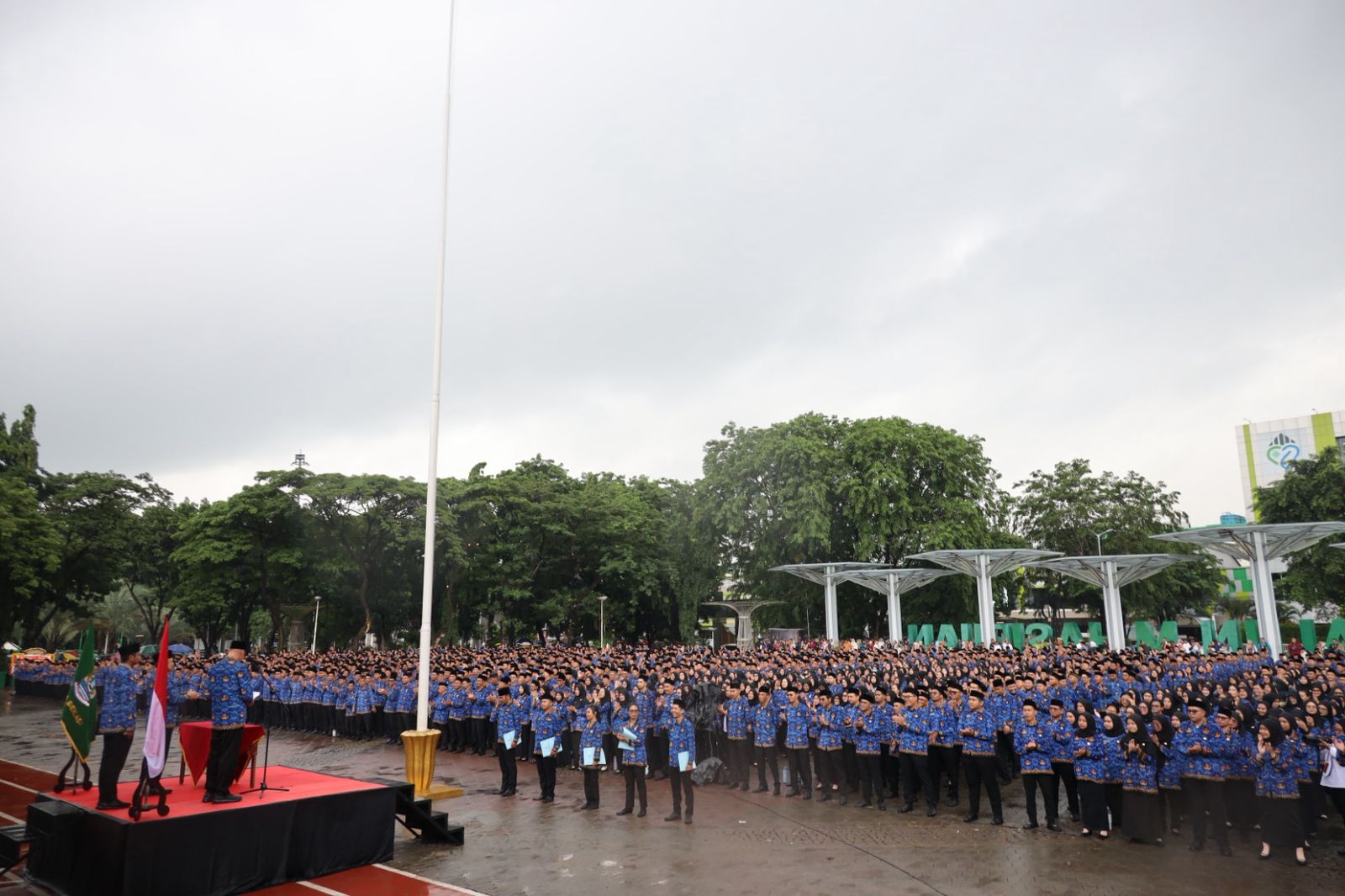 Mdi.News ibuan Pegawai Pemerintah dengan Perjanjian Kerja (PPPK) Paruh Waktu di Kota Bekasi menyampaikan rasa syukur usai resmi diangkat oleh Pemerintah Kota Bekasi di Alun-alun M. Hasibuan, Selasa (31/12).