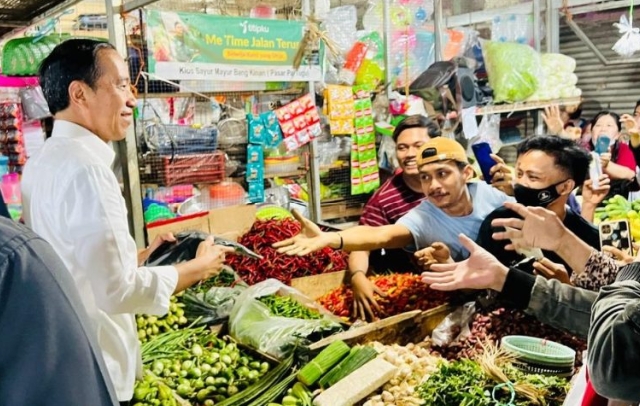 “Tadi saya sudah perintahkan Bulog untuk segera ke pasar ini agar ada seperti operasi pasar,” ucap Presiden.