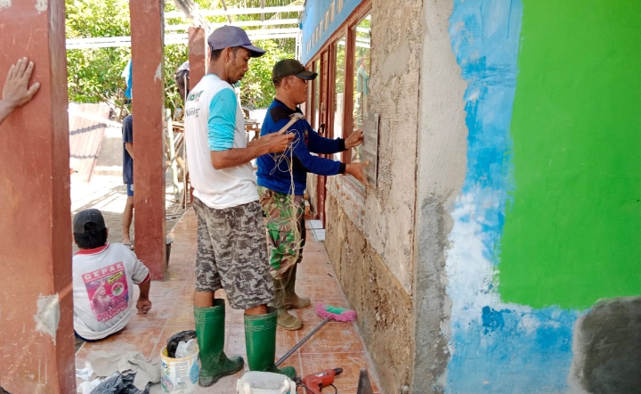 MDI NEWS | BARABAI, – Proses rehab Musholla Darul Khair di desa Mangunang terus digenjot oleh Satgas TMMD bersama warga masyarakat.