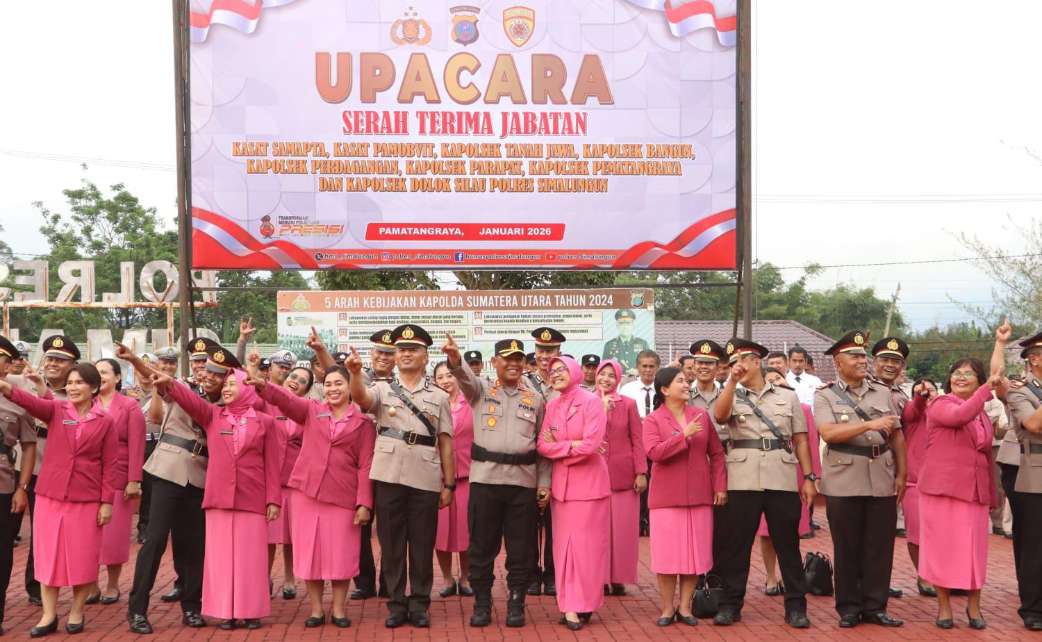 MDI.NEWS, Simalungun – Kepolisian Resor Simalungun menggelar upacara serah terima jabatan delapan pejabat utama di lapangan upacara Mapolres Simalungun, Jalan Jhon Horailam Saragih, Pamatang Raya, Senin sore, 19 Januari 2026. Upacara dipimpin langsung Kapolres Simalungun AKBP Marganda Aritonang, S.H., S.I.K., M.M., dan berlangsung khidmat hingga sore hari.