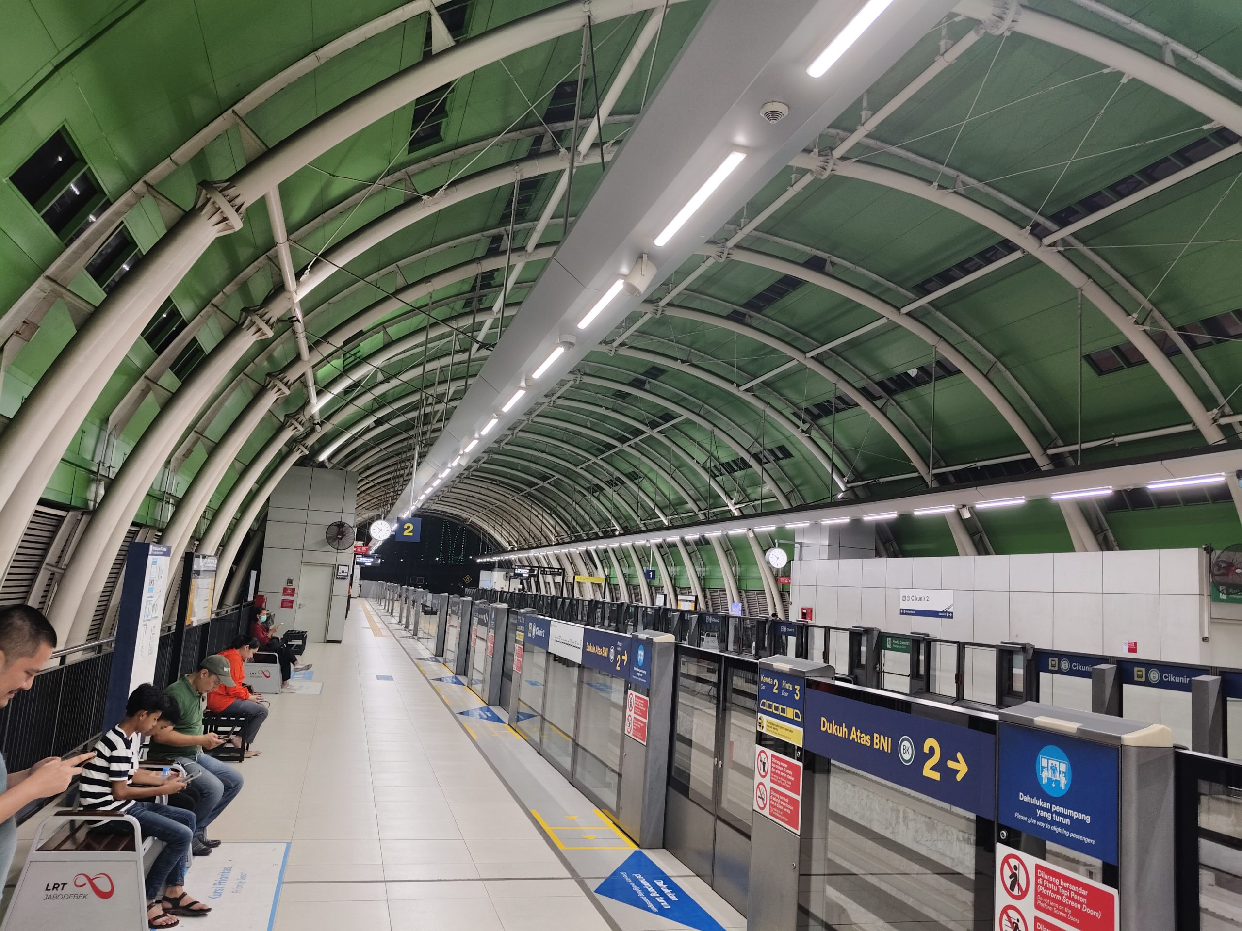 Struktur elevated stasiun, dengan pencahayaan modern dan sistem transportasi massal yang efisien, menjadikan Cikunir 2 malam hari penanda kota yang berkembang. Cahaya lampu yang menyapu rel dan peron, ditambah struktur arsitektur modern, menciptakan kombinasi visual yang estetik dan menyentuh—seolah stasiun ini tak hanya sebagai fasilitas publik, tetapi juga pajangan kota yang menenangkan.