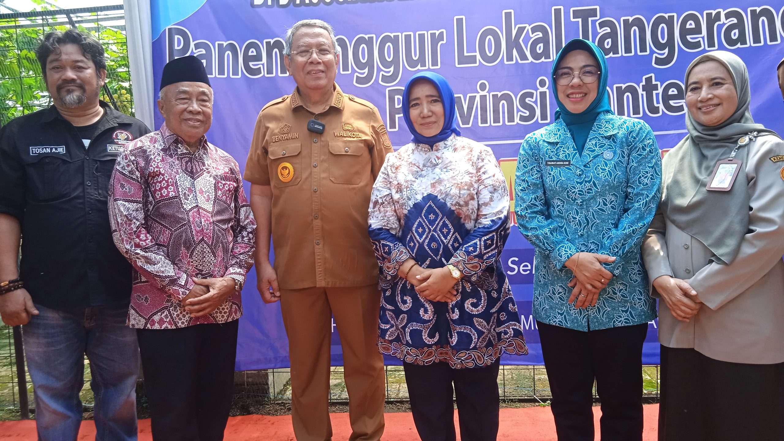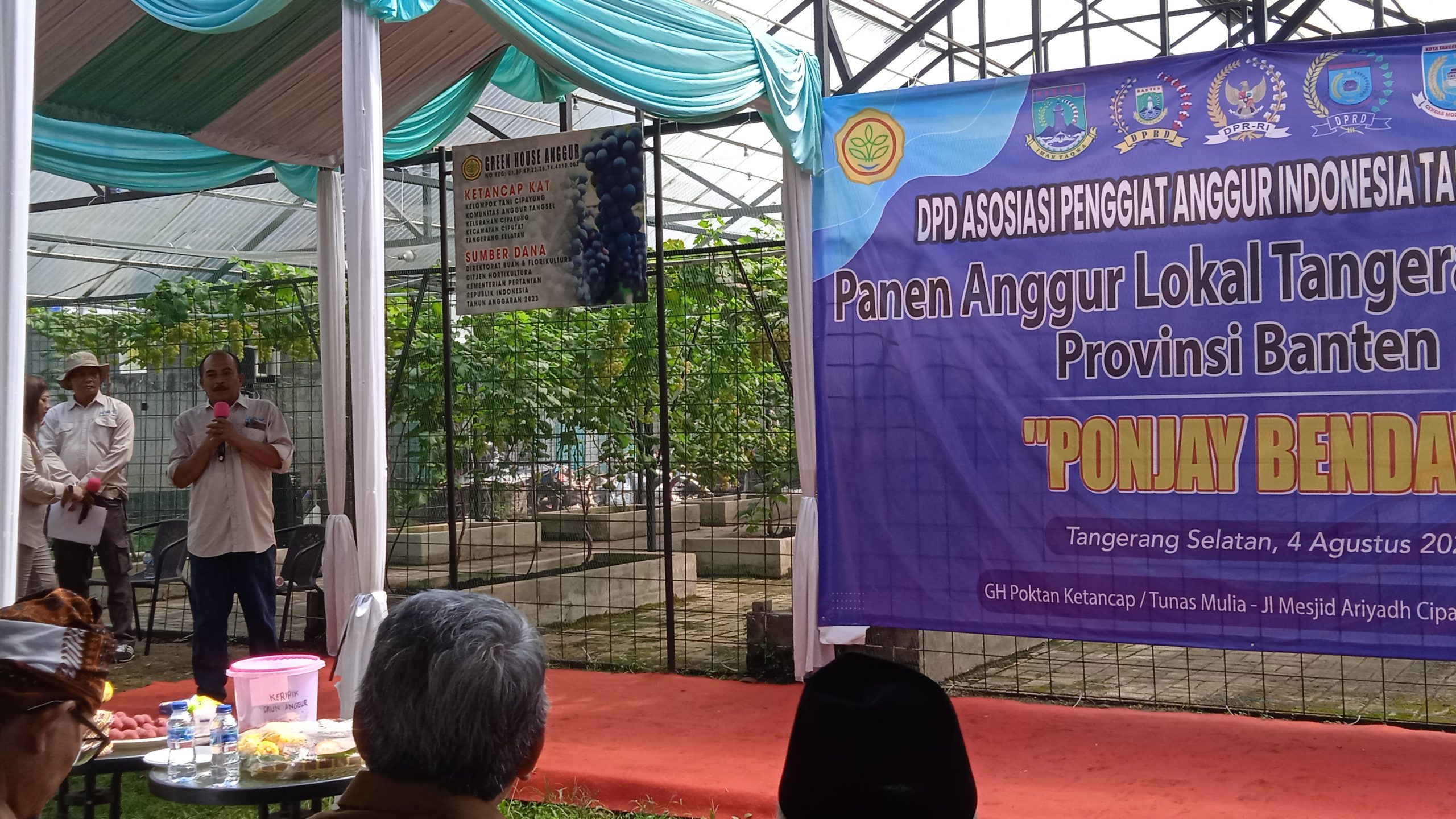 Turut hadir panen perdana varietas anggur ” PONJAY BENDAV ” Pembina DPD ASPAI Tangerang Selatan Hj. Lista Hurustiati, SH. MH, Ketua TP PKK Banten Tinawati Andra Soni, Kementerian Pertanian RI Direktur Holtikultura Sri Haryati, Walikota Tangerang Selatan H. Benyamin Davnie, Mantan Menteri Negara Koperasi Usaha Kecil dan Menengah Kabinet Persatuan Nasional (1999- 2001 ) Drs.H.Zarkasih Nur , Camat dan Lurah Cipayung, Ketua Umum ASPAI Tosan Ajie, dan DPP ASPAI Roy Nurdin.