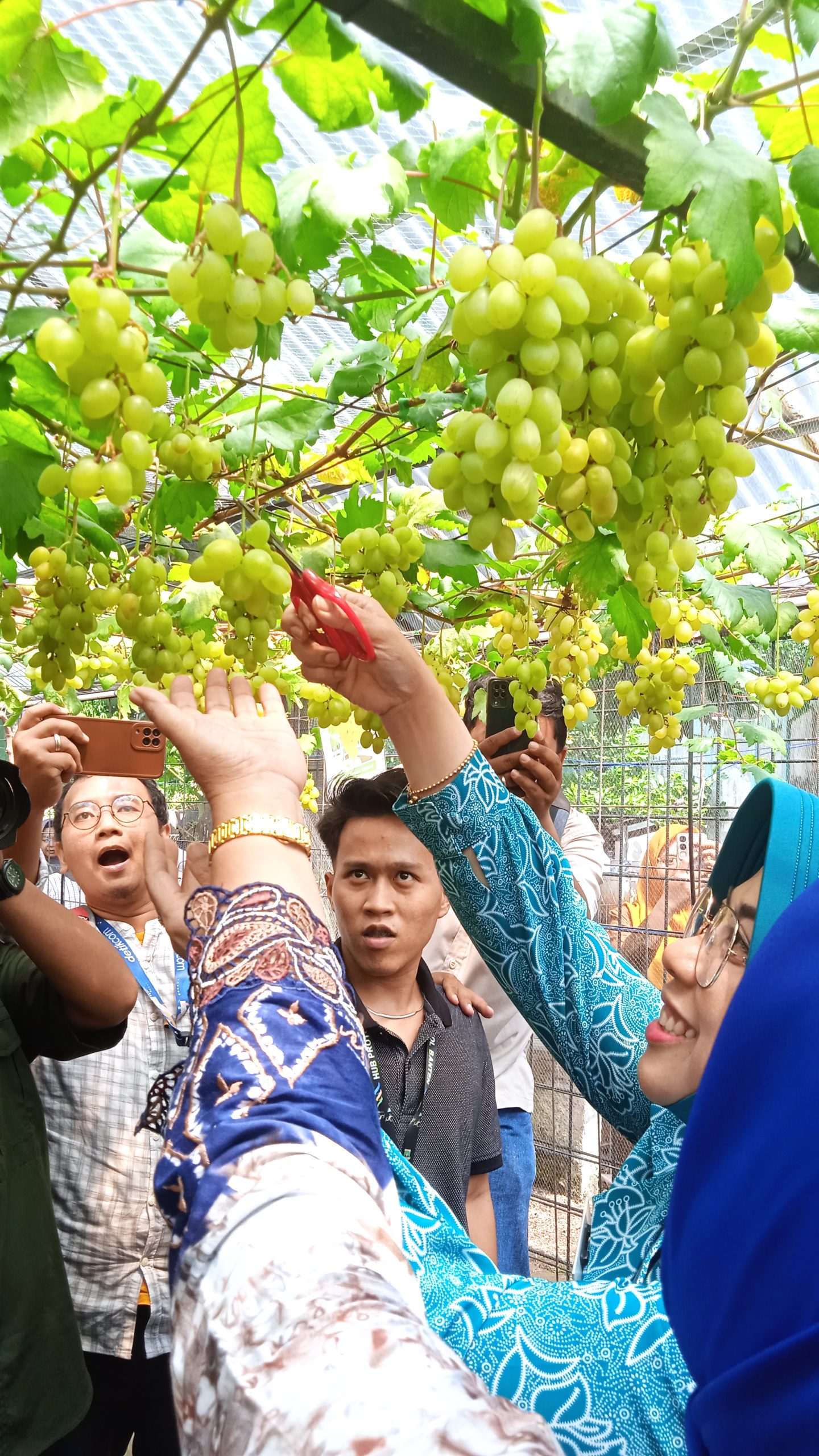 MDI.NEWS – Cipayung, Tangerang Selatan. DPD Asosiasi Penggiat Anggur Indonesia Tangerang Selatan Panen perdana Anggur Lokal Tangerang Selatan Provinsi Banten Varietas “PONJAY BENDAV”. di Green House Poktan Ketancap / Tunas Mulia Jl. Masjid Ariyadh Cipayung – Ciputat . Pada hari Senen, 4 Agustus 2025.